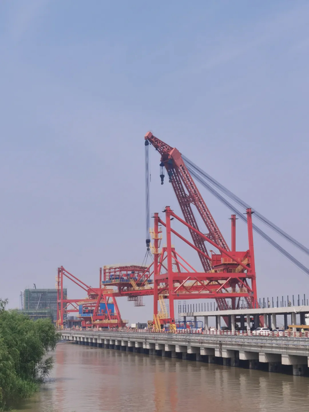 江西九江銀砂灣碼頭首批2臺(tái)1000t/h卸船機(jī)分別于5月8日、9日完成2臺(tái)卸船機(jī)大梁吊裝。此節(jié)點(diǎn)的完成意味著攻克了項(xiàng)目安裝最難的部分,卸船機(jī)的主結(jié)構(gòu)基本安裝結(jié)束,為項(xiàng)目如期交付奠定了堅(jiān)實(shí)基礎(chǔ)。